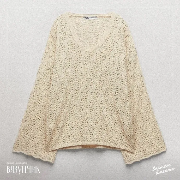 Пуловер очень красивым узором спицами