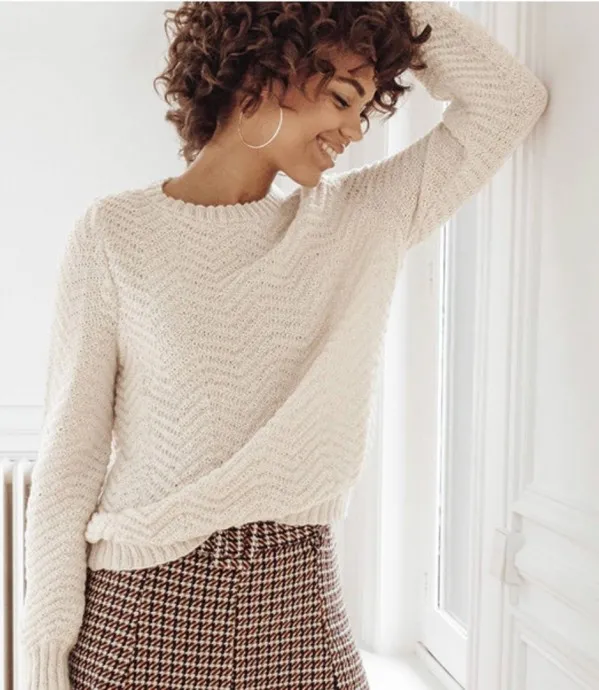 Джемпер вяжется простым зигзагообразным теневым узором из пряжи с кашемиром.