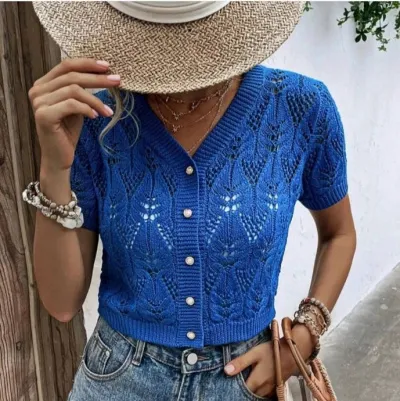 Укороченный жакетик красивым ажурным узором