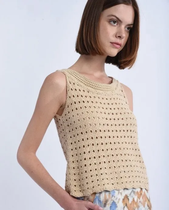 Золотисто-бежевый топ, обновляем летний гардероб