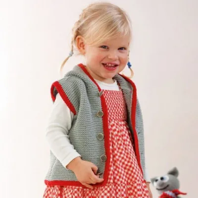 Удобный жилет с застежкой на пуговицу пригодится в любой сезон. Его можно связать и из хлопка, и из шерсти. детям