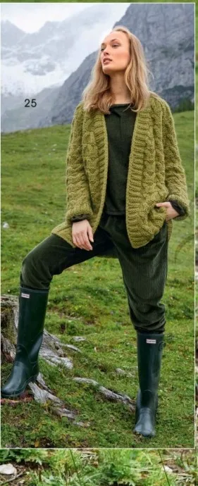 Кардиган без застёжки с рельефными узорами спицами