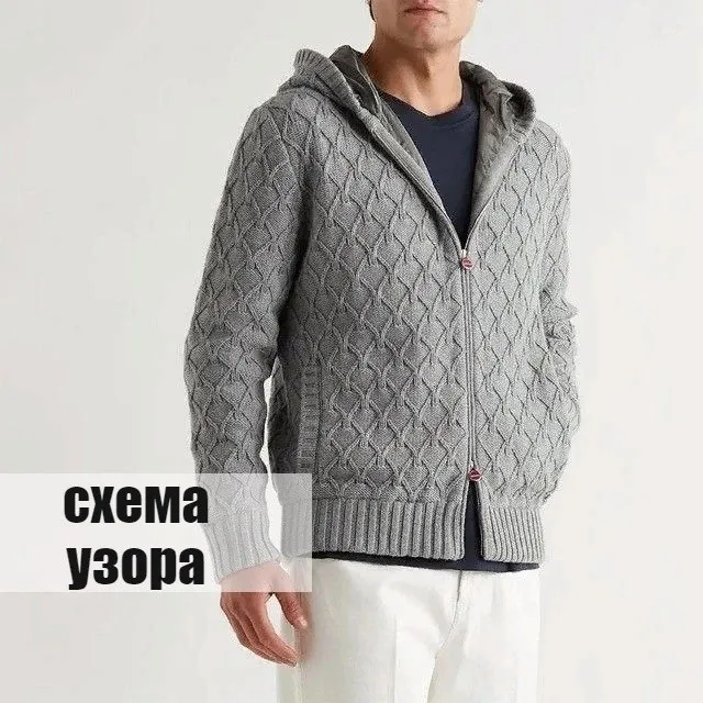 Мужской кардиган с капюшоном, вяжем спицами