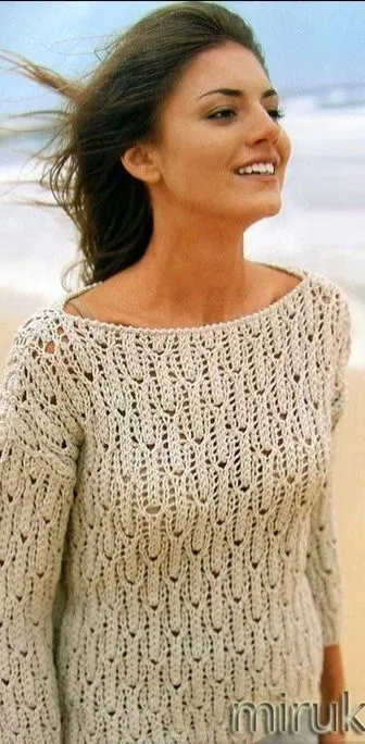 Вязать по схеме, на которой приведены только лиц. р., в изн. р. петли и накиды вязать изн., 2 накида подряд провязывать 1 изн. и 1 лиц.