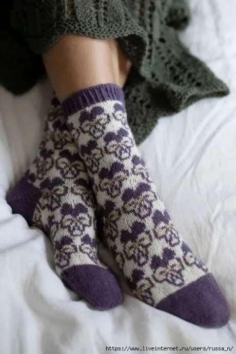 Носочки с узором "Анютины глазки"