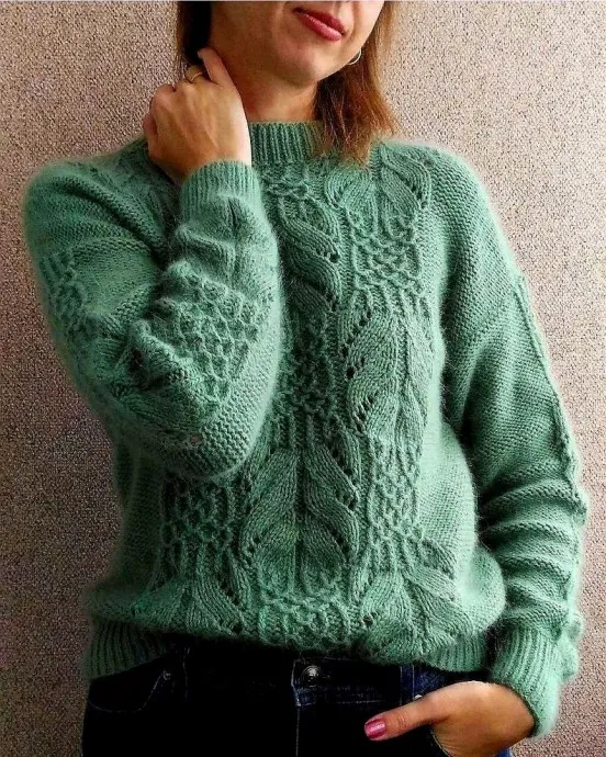 Джемпер спицами одним из красивейших узоров Хитоми Шида