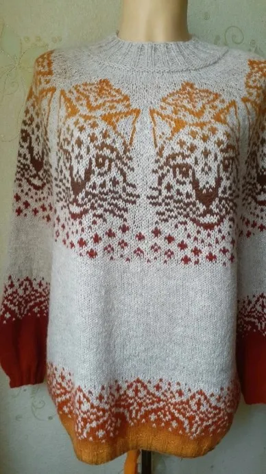 Джемпер с круглой жаккардовой кокеткой с кошками