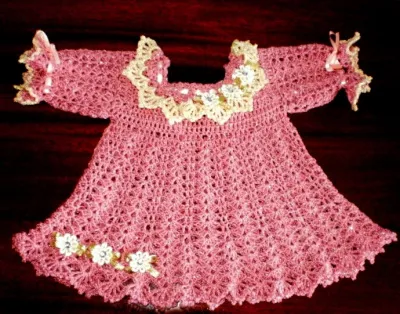 Моей внучатой племяннице связала в подарок вот такое платьице. А к нему ещё впридачу пинетки-сапожки.