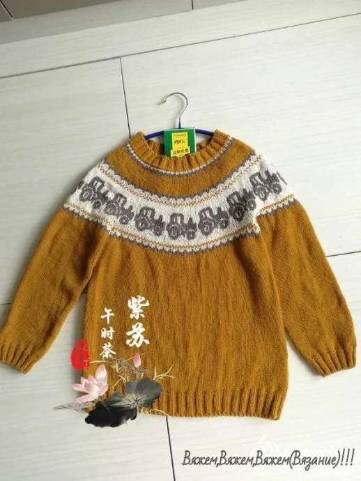 Узор "Трактор" для круглой жаккардовой кокетки спицами