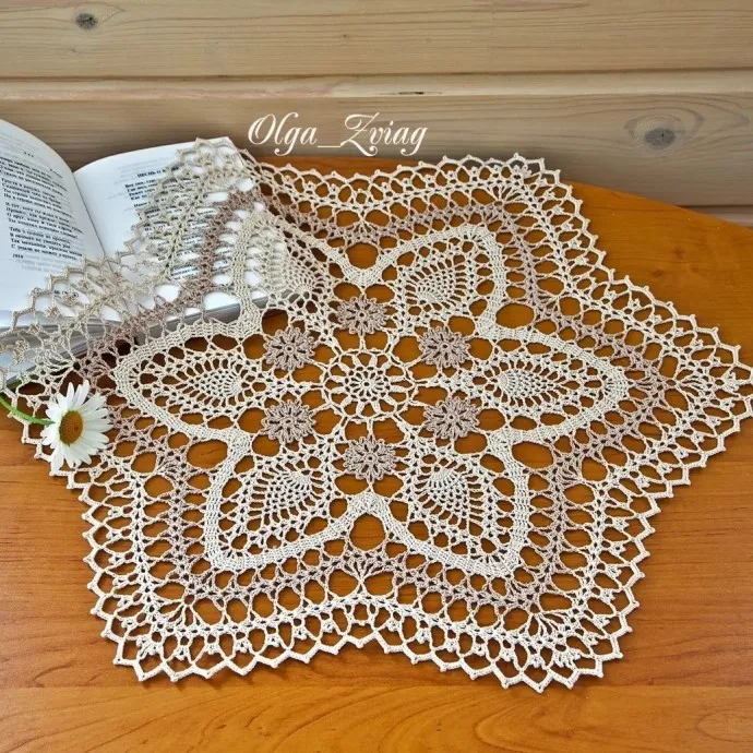 Красивая салфетка в технике брюггского кружева