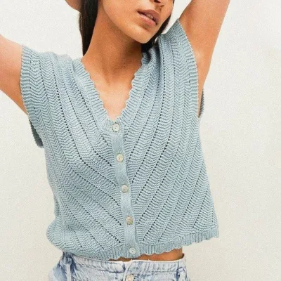 Топ/жилет с застёжкой спереди на пуговичках. Фестонный край резинки.