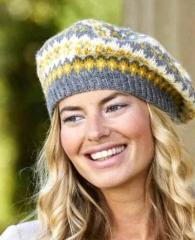 Берет жаккардовым узором спицами