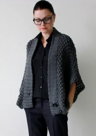 Жакет с цельновязанным рукавом спицами узором "шиповник"