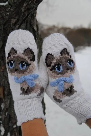 Варежки с котенком
