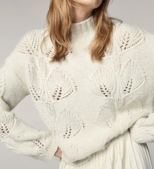 Продолжить как установлено, выполняя узор с листьями. Прибавить с обеих сторон по 1 петле в 7-м ряду, затем в каждом 10-м ряду 3 раза, затем в каждом 8-м ряду 3 раза, затем в каждом 6-м ряду 4 раза (в итоге по 11 петель с каждой стороны). Закончить рукав в 12-м изнаночном ряду узора с листьями (в самой широкой его части) = 65 петель.