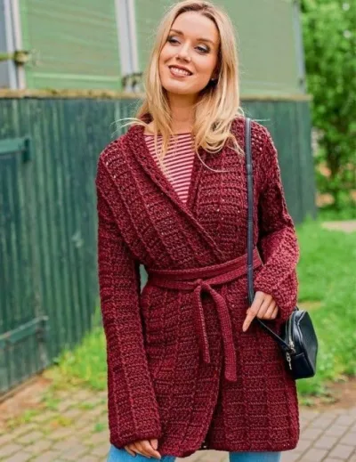 Кардиган с поясом крючком