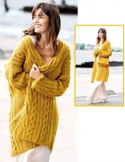Длинный кардиган или пальто? Как вам больше нравится! Главное, что такая уютная вещь просто незаменима зимой. Эта модель хороша не только мягкой пряжей с добавлением шерсти альпака и хлопка, но и фантазийным сочетанием различных «кос».