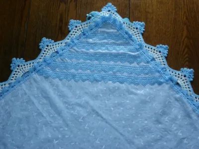 Комплект вязала месяц. В него вошло - комбинезон, сапожки, шапочка, одеяло, уголок и бант. Использовала пряжу Ализе "Детская новинка". Ушло 1200 гр. Шапочку одеялко и уголок расшила пайетками. На бант...