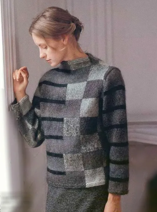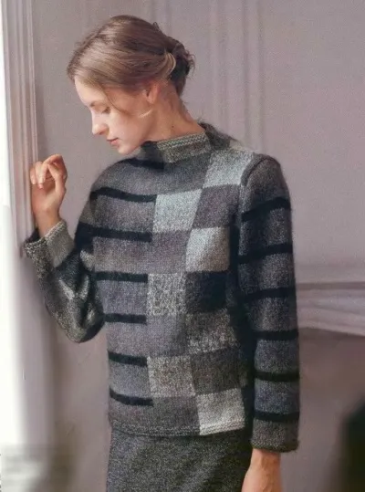 Джемпер с асимметрией в узорах в технике "интарсия"