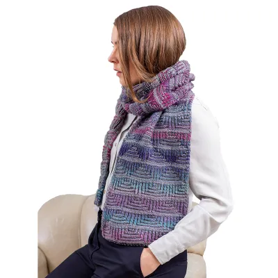 Рельефное вязание, объёмная резинка. Шарф с двухцветным узором бриошь.