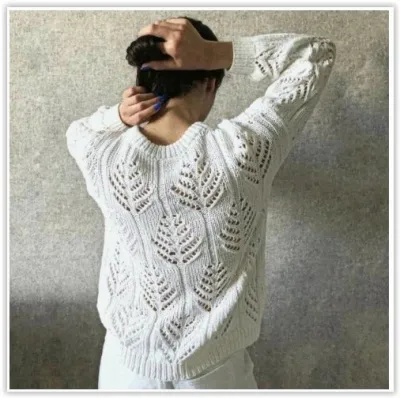Белоснежный джемпер оверсайз с крупным ажурным узором из «ёлочек»