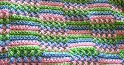8. Смените пряжу и повторите пп. 4-7. Чередуя цвета, изготовьте блок необходимого размера.
