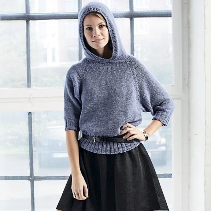 Легкий шелковый джемпер с капюшоном и рукавами длиной три четверти привлекает свободной посадкой.