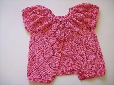 Набрать 77 петель и провязать 7 рядов платочной вязкой. Далее по 5 петель с каждой стороны для планок вязать платочной вязкой до конца работы. Между планками вязать 32 ряда фантазийного узора = 249 петель. В следующем ряду разделение на перед/спинку/рукава (далее вязать фантазийный узор всегда только с 13-того ряда) провязать 33 петли первой полочки, набрать 8 петель, переснять следующие 64 петли для первого рукава на нить или петледержатель, вязать 55 петель спинки, набрать 8 петель, переснять следующие 64 петли для второго рукава на нить, и провязать последние 33 петли второй полочки. продолжить вязать только 137 петель тела. Вязать до нужной длинны кофточки, либо до 22-ого, либо до 32-ого ряда узора. Провязать 7 рядов платочной вязкой, петли закрыть.