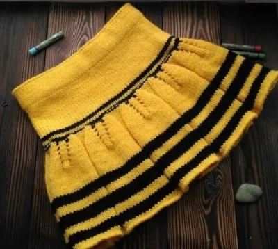 По низу юбки так же чередуем полосы черного и желтого цвета.