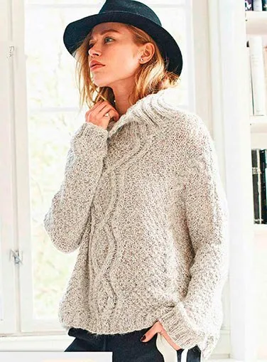 Пуловер оверсайз с арановым узором и «косами»