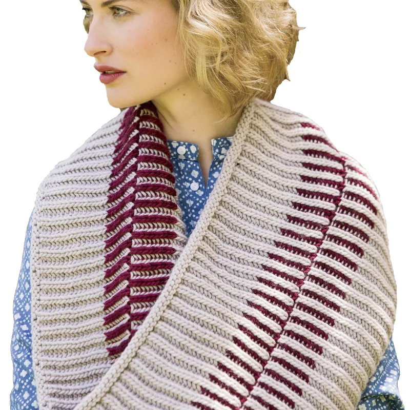 Пряжа: альпака Worsted Hand Dyes от Blue Sky Fibers (50% королевская альпака, 50% меринос; 91 м / 100 г): #2015 мастика (ОЦ) 4 мотка, #2012 клюква (КЦ) 1 моток.