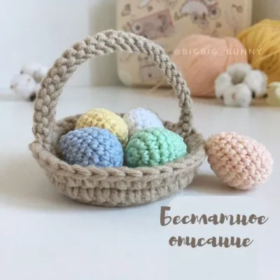 Напоминаю, что пряжа для корзинки должна быть раза в два толще, чем для яиц. Если вы хотите использовать ту же пряжу, что и для яиц, то вяжите в 2 нити.
