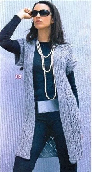 Стильный акцент: голубой длинный женский жилет спицами
