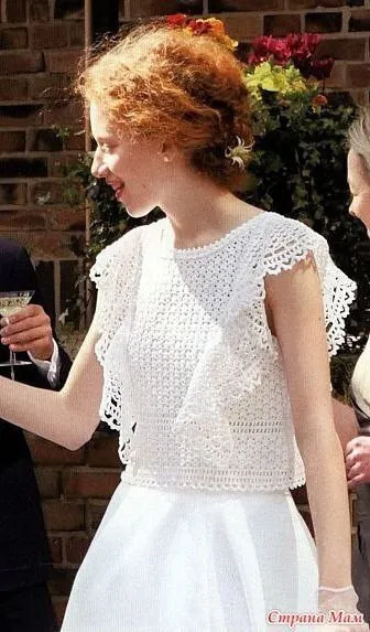 Ажурный короткий топ с вертикальными воланами смотрится очень женственно и стильно изящный крой идеально садится по фигуре.