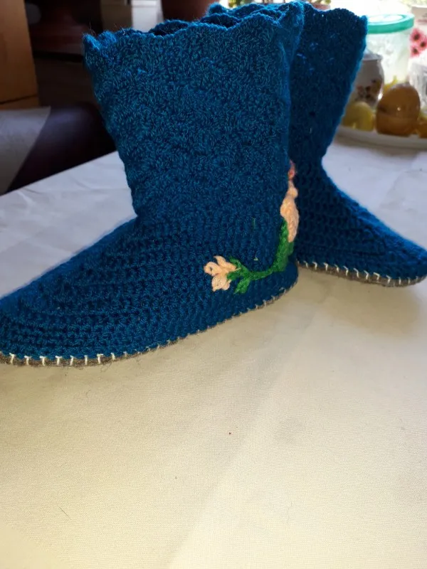 Спасибо. Вязала на подарок. Времени заняли мало. За вечер управилась. Сложность только в обьвязывании войлочной заготовки под подошву.