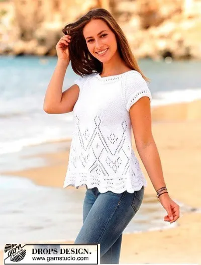 Топ вяжется вкруговую на круговых спицах. Рукава вяжите вкруговую на чулочных спицах.