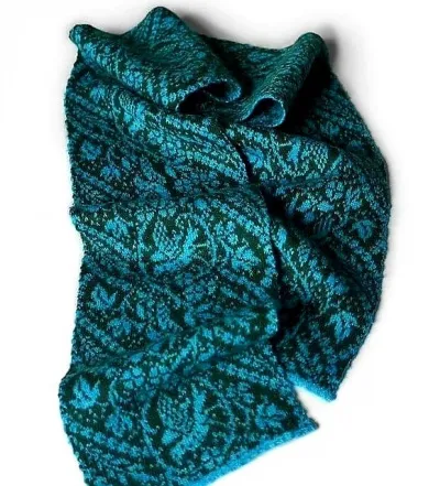 Шарф спицами с красивым жаккардовым узором с птицами