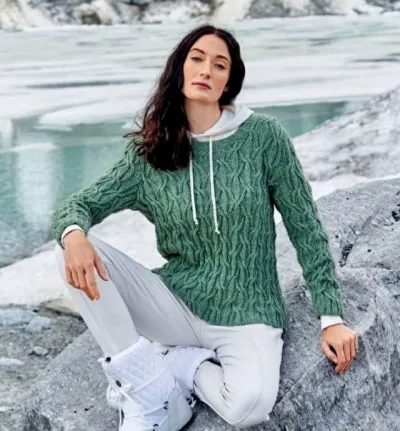 Вам потребуется: 500 (550) 600 г зеленой пряжи (80% шерсти, 20% шерсти опоссума; 100 м/50 г); спицы № 5 и 6; круговые спицы № 5.