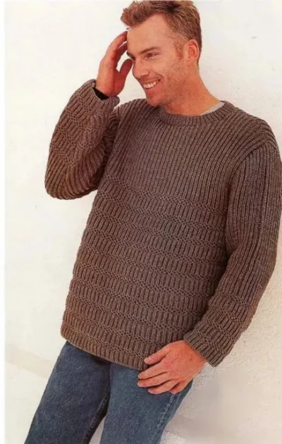 Вяжем мужчинам: Коричневый пуловер с патентным узором