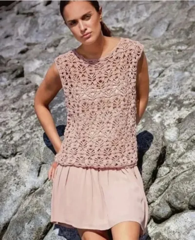 - Уникальный ажурный узор, который придает топу легкость и элегантность.