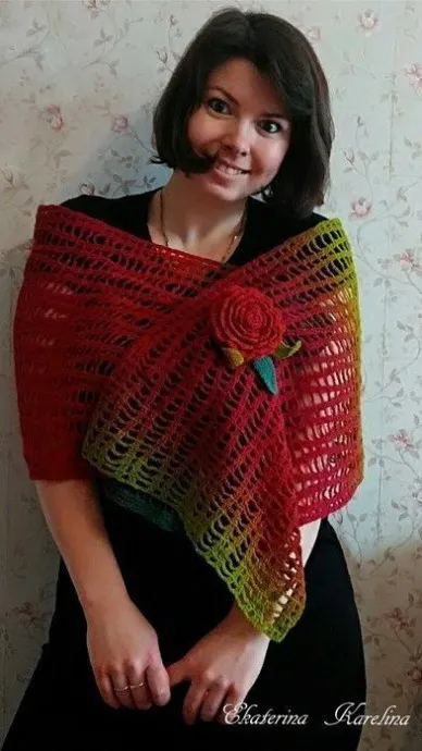 Яркий палантин спицами