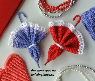 Предлагаю связать брошь в виде зонтика. Этот маленький аксессуар не останется незамеченным и внесет изюминку в ежедневный образ. Так же такую брошь можно сделать в качестве подарка.