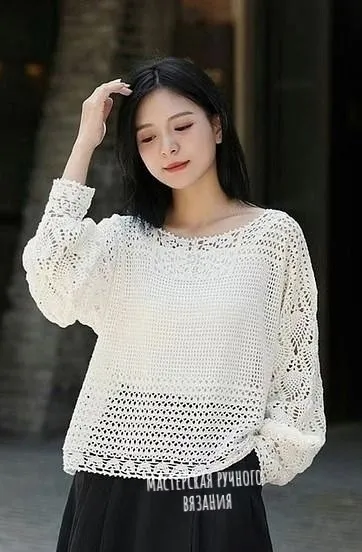 Белоснежная блуза с интересным сочетанием ажурных узоров