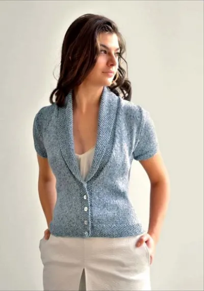 Милый жакет с короткими рукавами и шалевым воротником, приталенный силует, вяжется отдельными деталями с идеальной посадкой по фигуре, классика на все времена