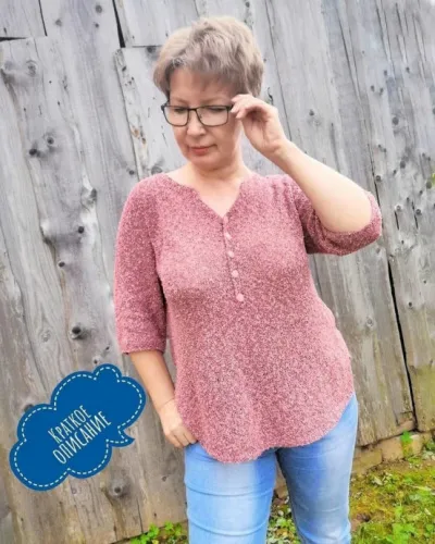 Рубашка из буклированной смесовочки: хлопок, лен, ПА. Цвет - Античная роза. 1150 м /100 гр в три нити. Лицевая гладь, реглан сверху. Спицы номер 3,25 на основное полотно.