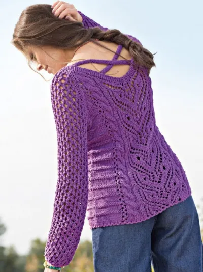 Ажурный пуловер со жгутами на спинке