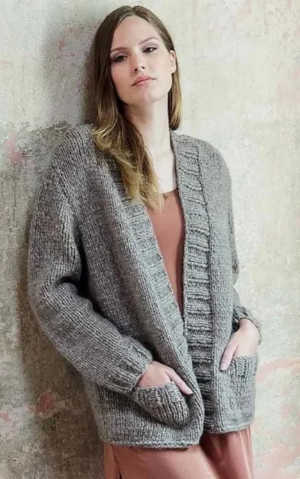 Свободный кардиган спицами с накладными карманами отлично дополнит ваш зимний гардероб. В нем вы будете чувствовать себя тепло и комфортно.