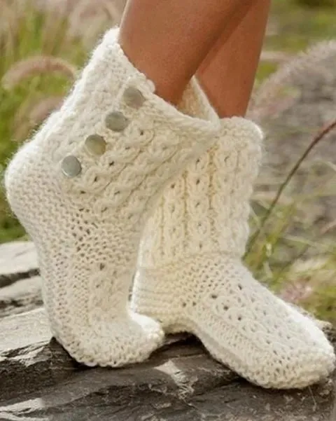 Вяжем на нужную Вам длину, в последнем ряду убавляем 6 петель, вяжем 5 рядов платочной вязкой, закрываем сшиваем, накладываем наверх тапочка, примерно 2 см, и пришиваем свободно