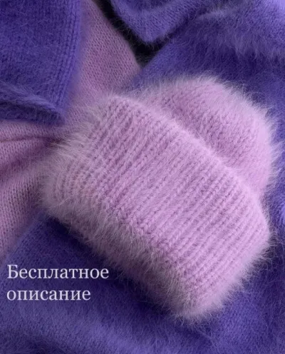 Теплая шапочка с двойным отворотом из ангоры 80 спицами