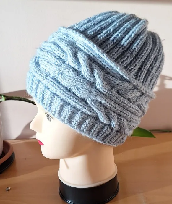 Шапка спицами с поперечный косами